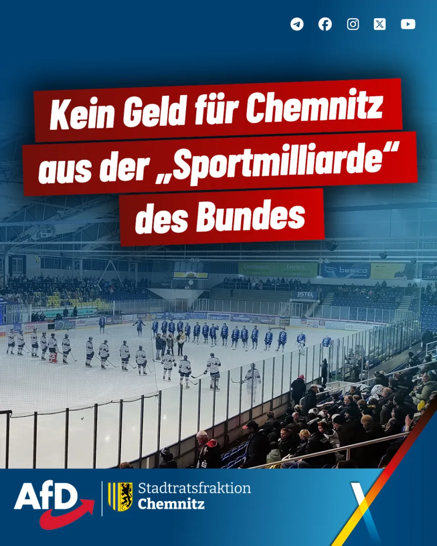 Keine Fördermittel für Chemnitz aus der sogenannten „Sportmilliarde“ des Bundes – das ist ein fatales Signal für unsere Stadt und unsere Sportinfrastruktur.